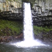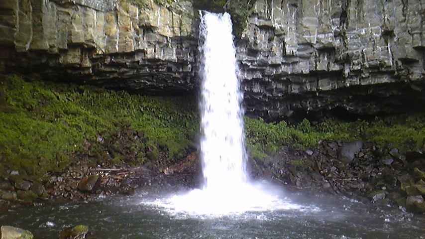 近くにキャンプ場があり、歩道を下っていくと滝が見えてきました。