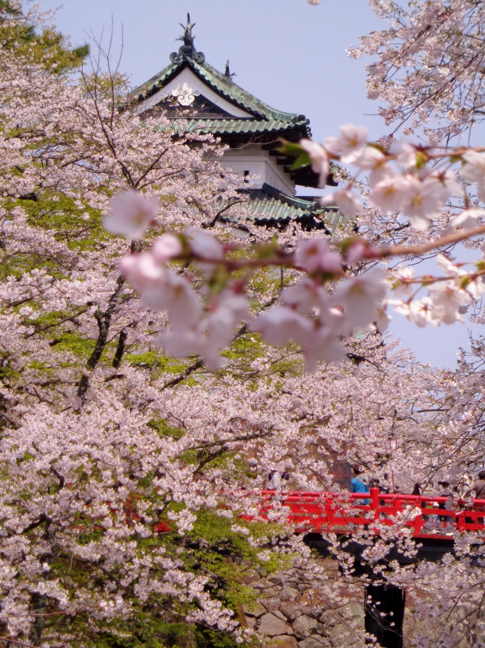 今年が東北以外は桜の開花が早く、弘前城の桜の連休の真ん中あたりが