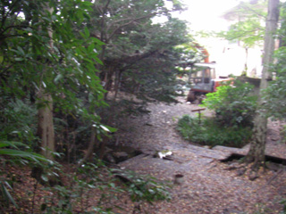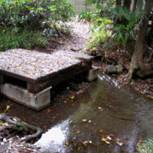 竹林公園入口の交差点から台地の上に続く畑の中の道を進むと、宅地化が進む前の農村の風景が残っています。台地から落合川の谷に下っていった斜面の途中の雑木林に降りる階段を下ると池が現れ、崖の岩の下から清水が湧き出しています。対岸は住宅地になっていますが、流れに沿って進むと竹林公園で、竹の子を採るなと看板が出ていて、竹林公園の湧水からの流れは住宅地の中を流れて、緑道公園に沿って落合川まで続いていました。