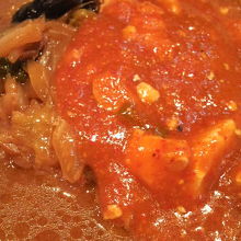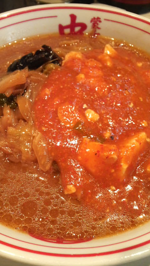 味噌仕立ての真っ赤なスープの上に激辛麻婆が乗っており、見た目も食欲をそそります。