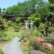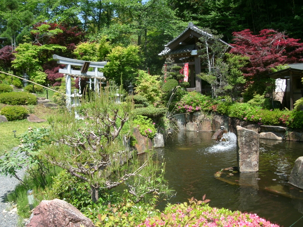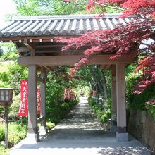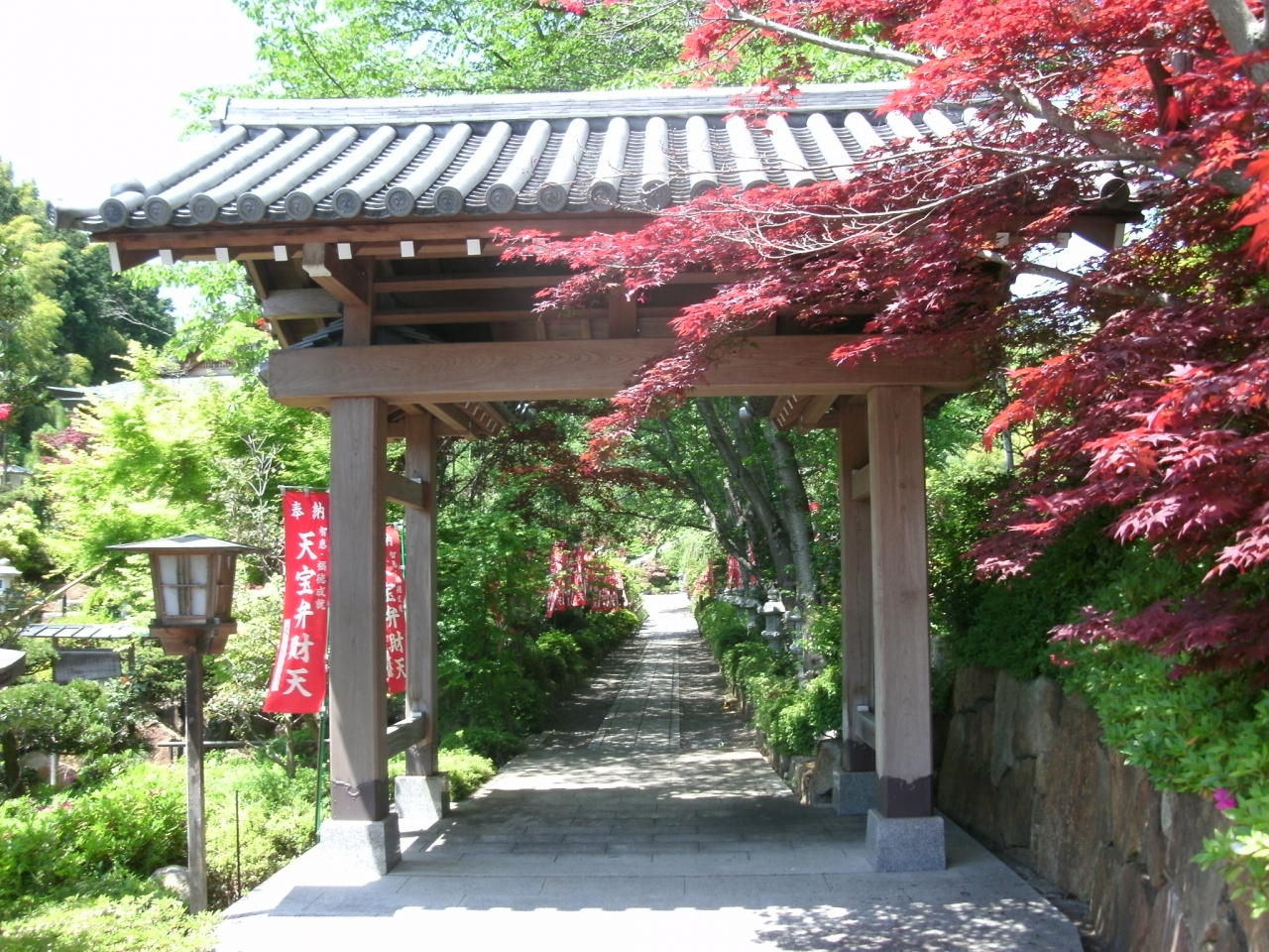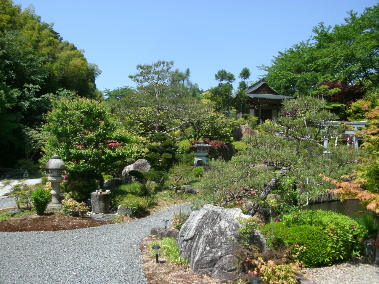 「天鏡院」さんは、京都市内からだと、国道9号線の“樫原盆山”の信号から200mほど西に行ったところから、国道を離れて右手ある細い道を200mほど進むと鎮座されています。真言宗のお寺さんで、『竹と花の寺』と言われているとおり、洛西の竹林に囲まれた中にある寺院です。ご本尊は浪切不動明王、境内には 天宝弁財天、大神末司宮がまつられています。本堂は非公開ですが、境内は春は桜、夏は紫陽花、秋は紅葉と四季折々の季節を感じる事が出来る庭園です。静かで手入れが行き届いた庭は見ごたえがあり、無料で入場出来ますのでお勧めします。駐車場もあります。