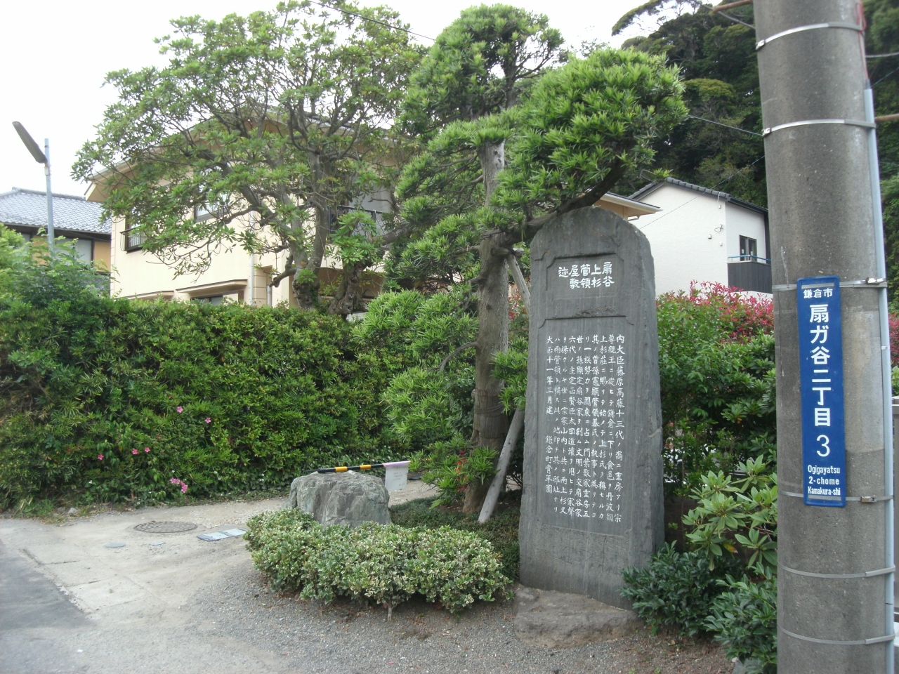 扇ガ谷の護国寺近くの道路沿いにその碑が建っています。多くの観光・行楽客は素通りです。歴史探訪の人が薀蓄述べていました。余程関心がないと立ち止まりませんよね。