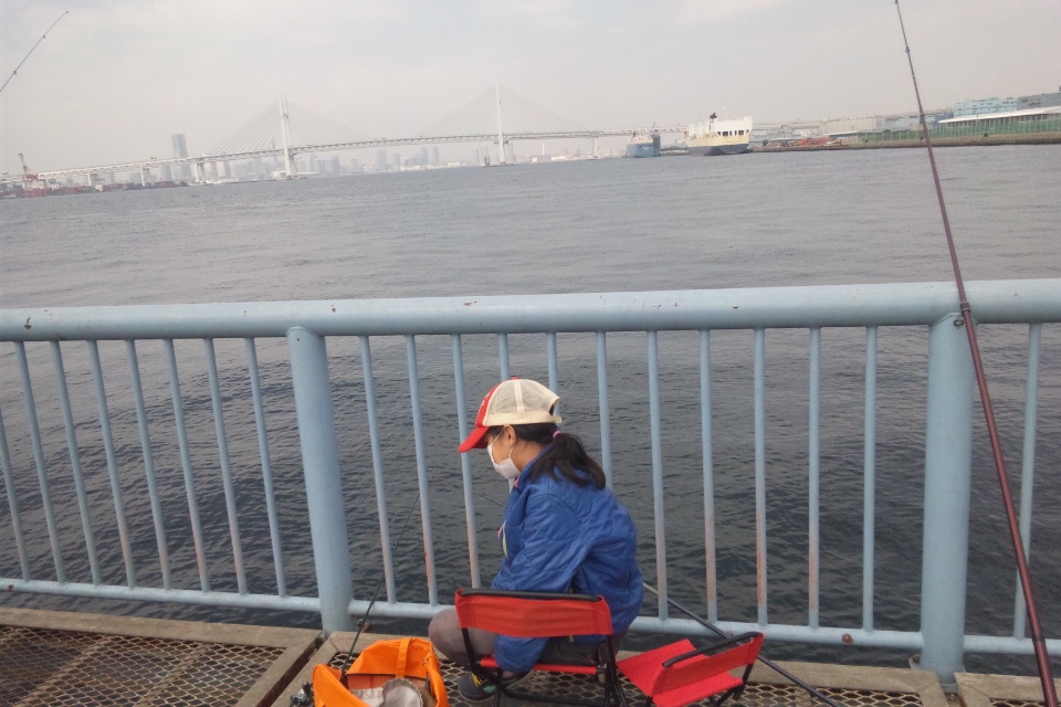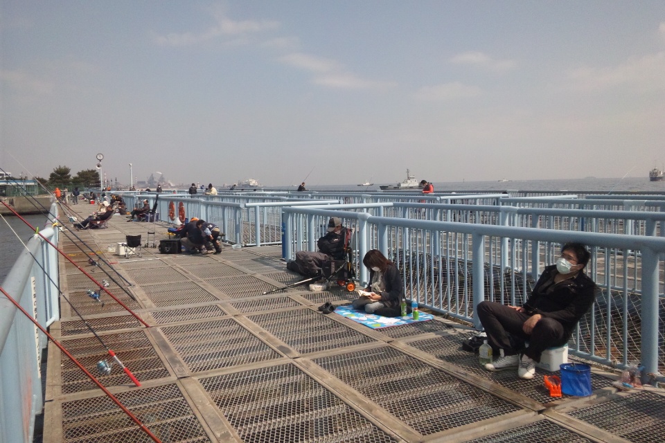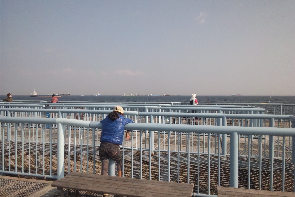 3月30日に小4の娘と訪れた時も、多くの家族連れがいた。足場はフラットな金網で安定しているし、海側は柵で守られていて安全。ただ人が仕掛けを投げ込む時は注意してね。人に気を使わない釣り人も、残念ながらいるから。