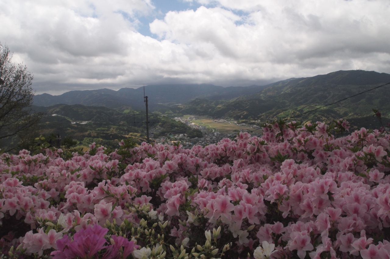 つつじ越しに見下ろす大洲ののどかな街並みもなごみました。