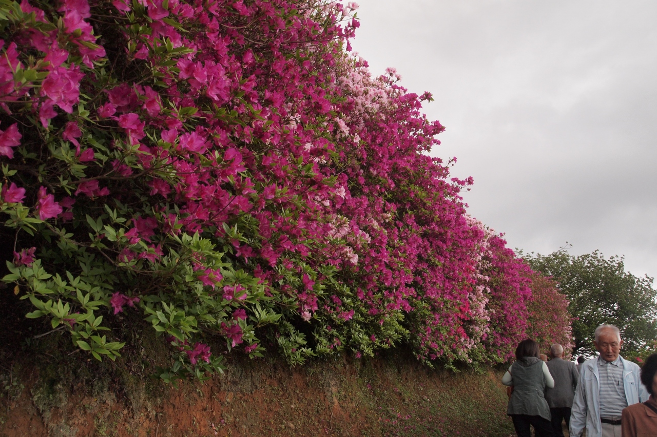 つつじの季節にはその豪華さで有名な大洲の名所です。