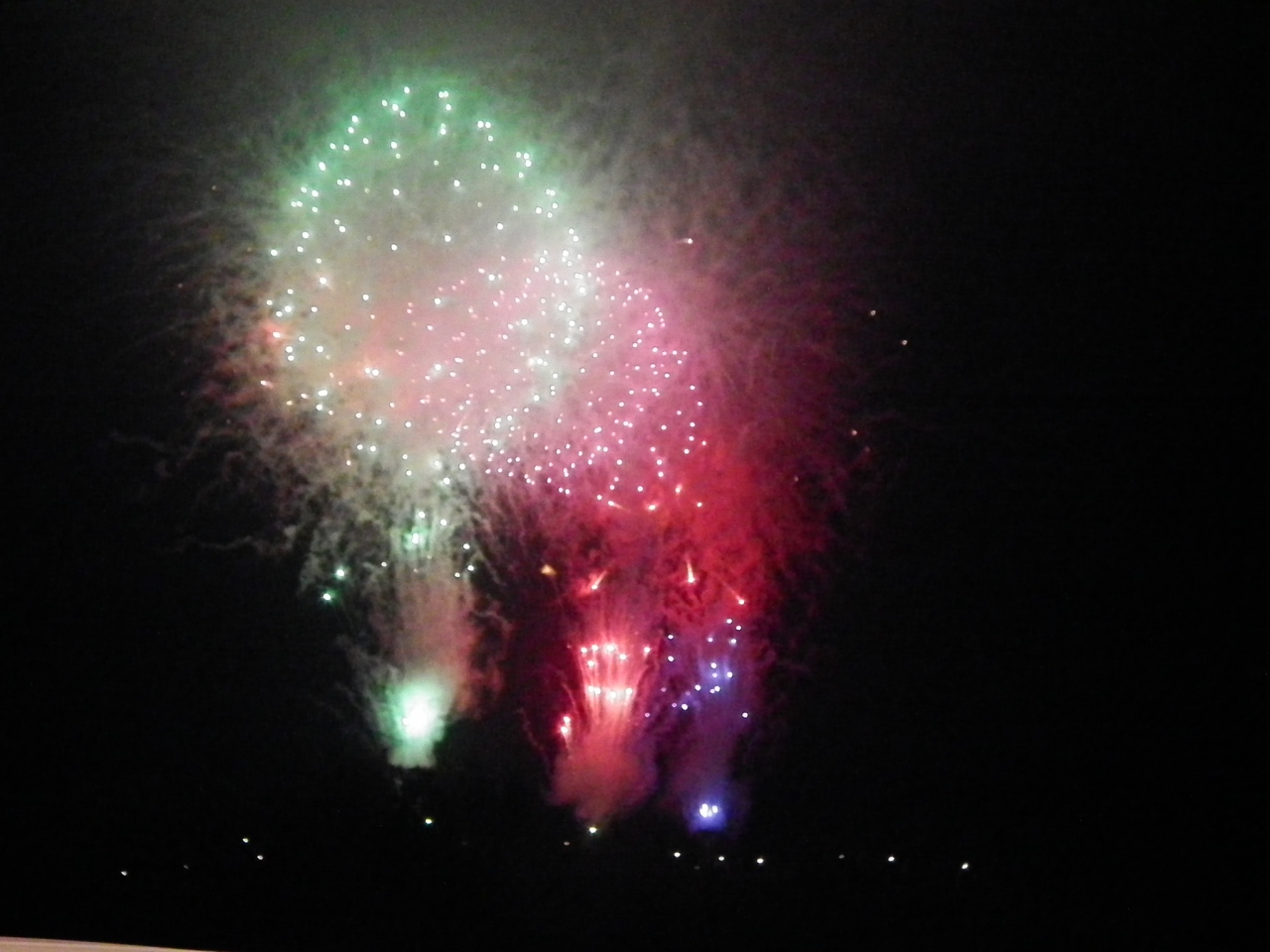 この一日だけ大混雑、日が暮れると秩父神社に入ることも困難。笠鉾曳行は団子坂がクライマックスというけれど観覧席をとっていないとまず見ることは無理。で、偶然通り過ぎる笠鉾を見ながら食べ物屋台びっしりの参道を歩いて、道の駅の物産展を見てショッピングセンターの屋根から花火を見るのでした。