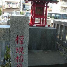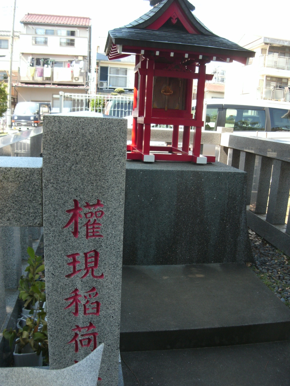 旧東海道から中に入ったところにあります。広くはありませんが神社の形態を成しています。境内には稲荷さんが祀られていました、この名が権現稲荷。