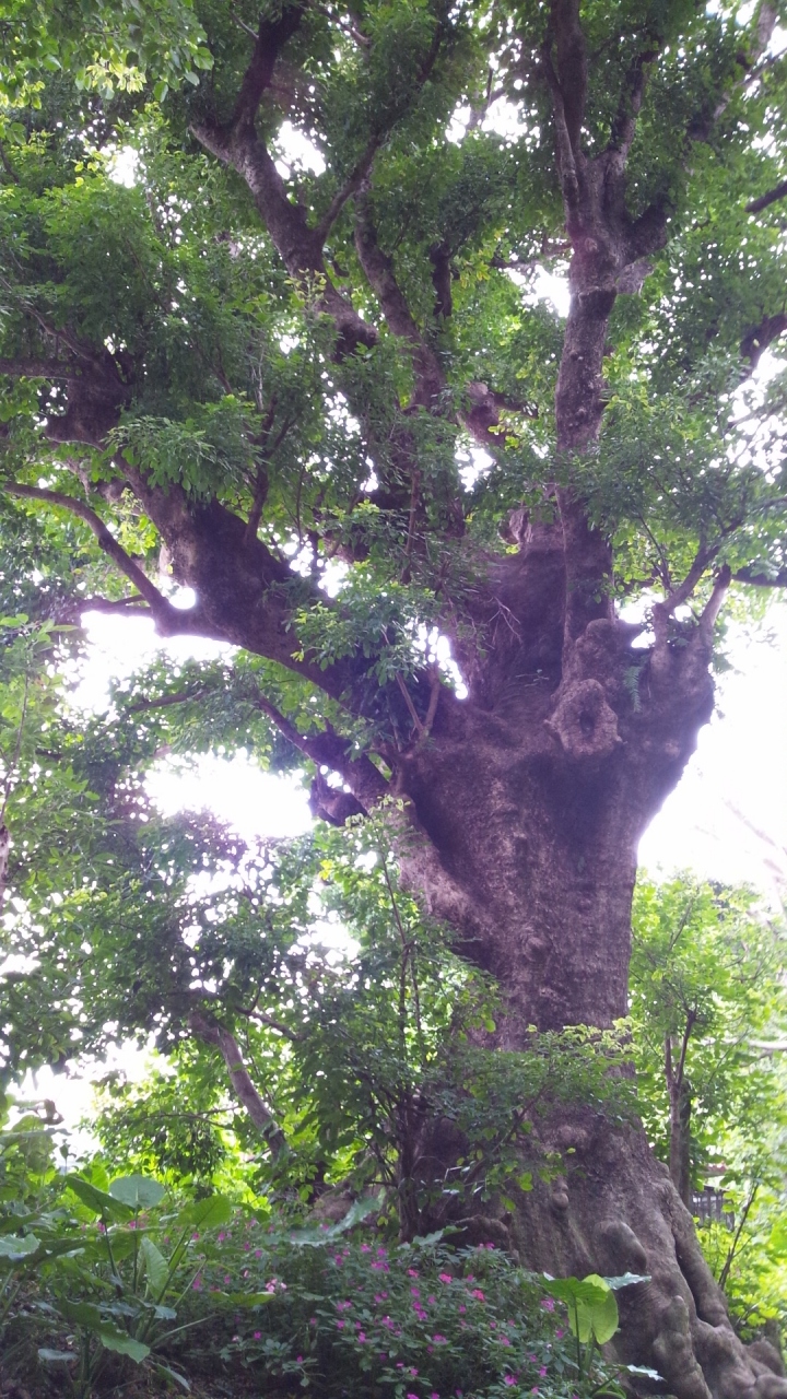 その通りに細い道を進むと、突如アカギの巨木が現れます。