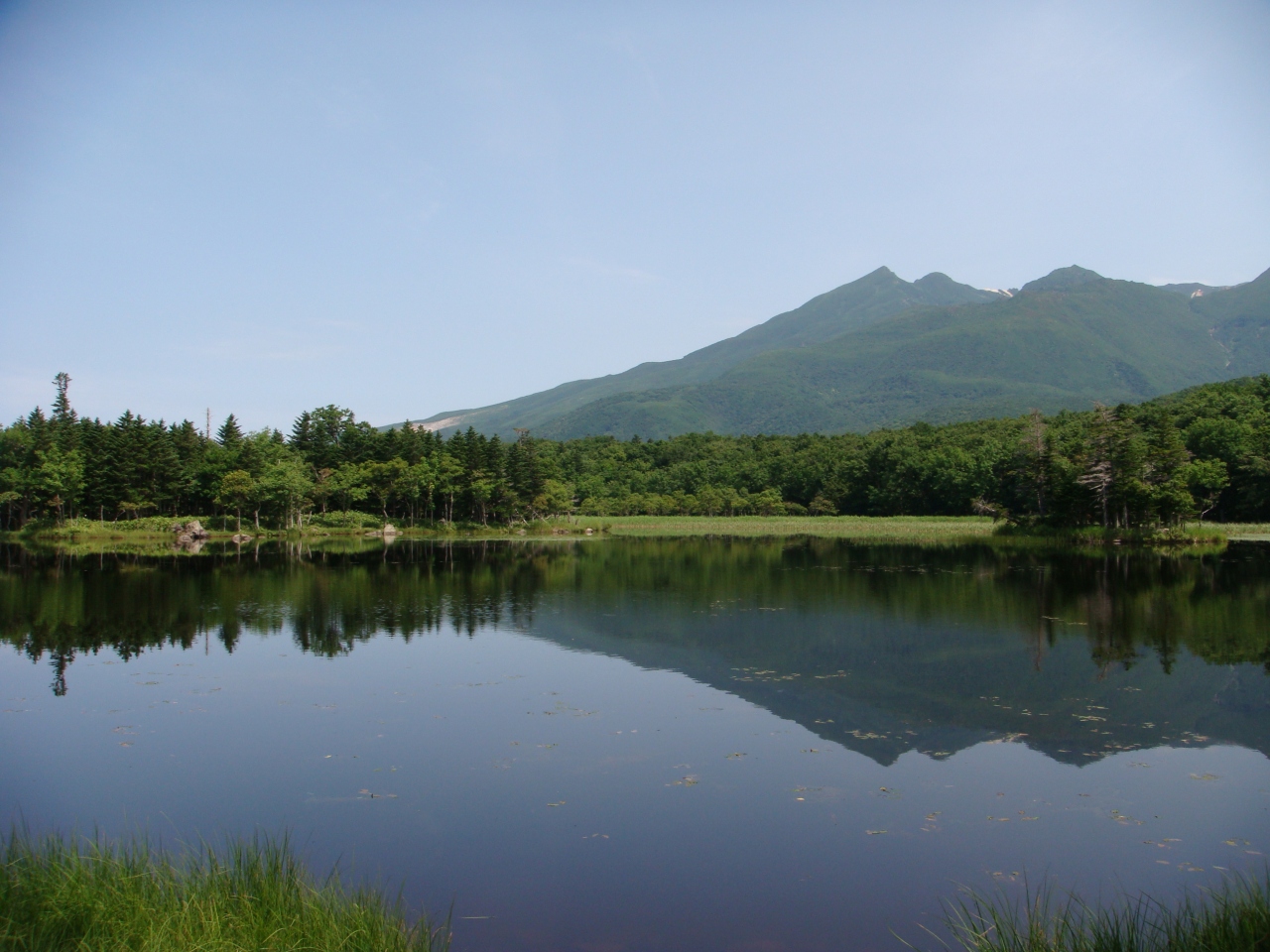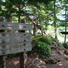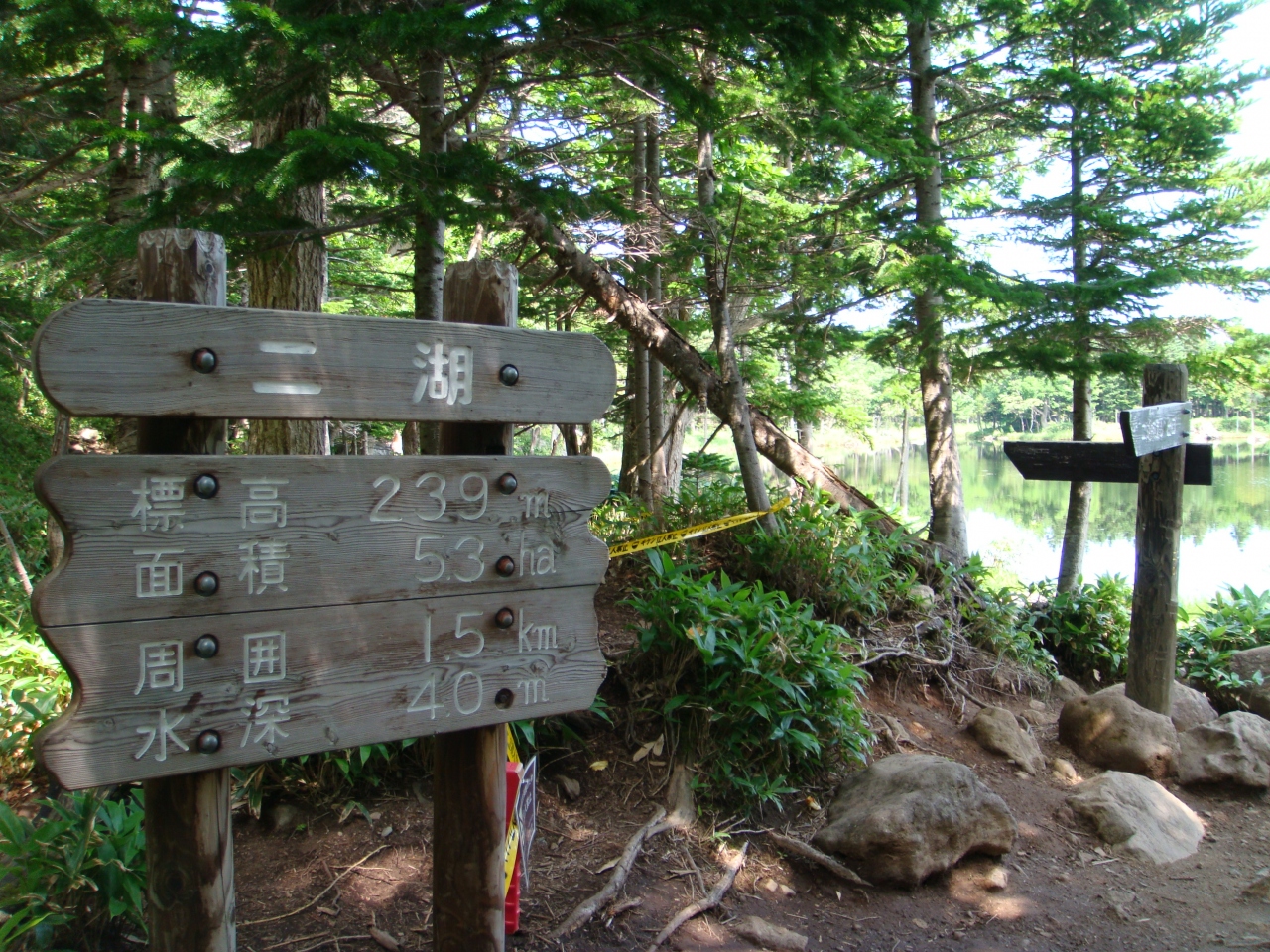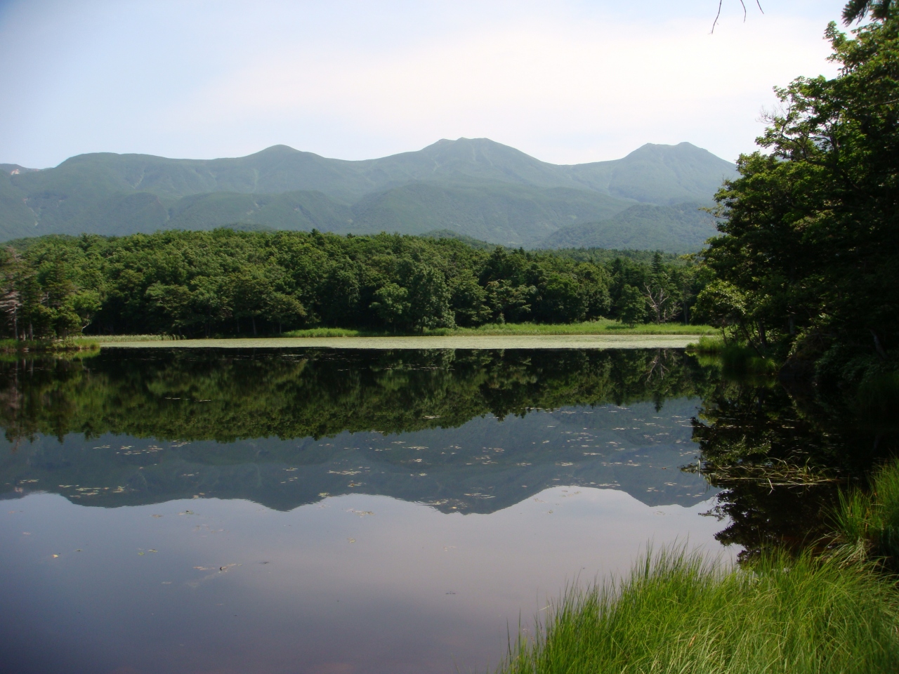 知床五湖の散策、一湖を過ぎ原生林の中の木道を進むと二湖が見えてきます。