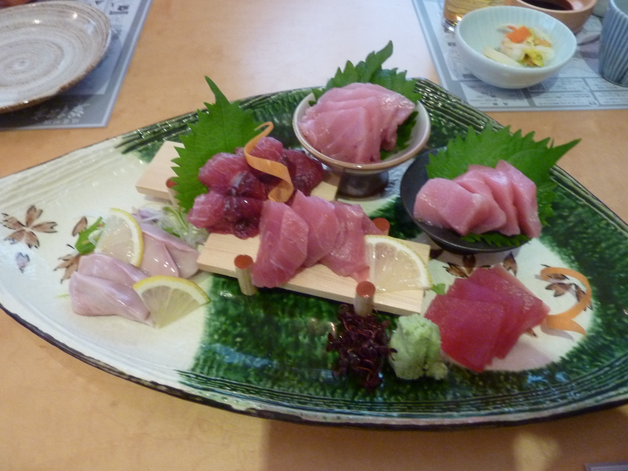 これには、定番の赤身・中トロ・トロの他に、東京ではあんまりお目にかかれないホホ・カブト・白子のお刺身が付きます。