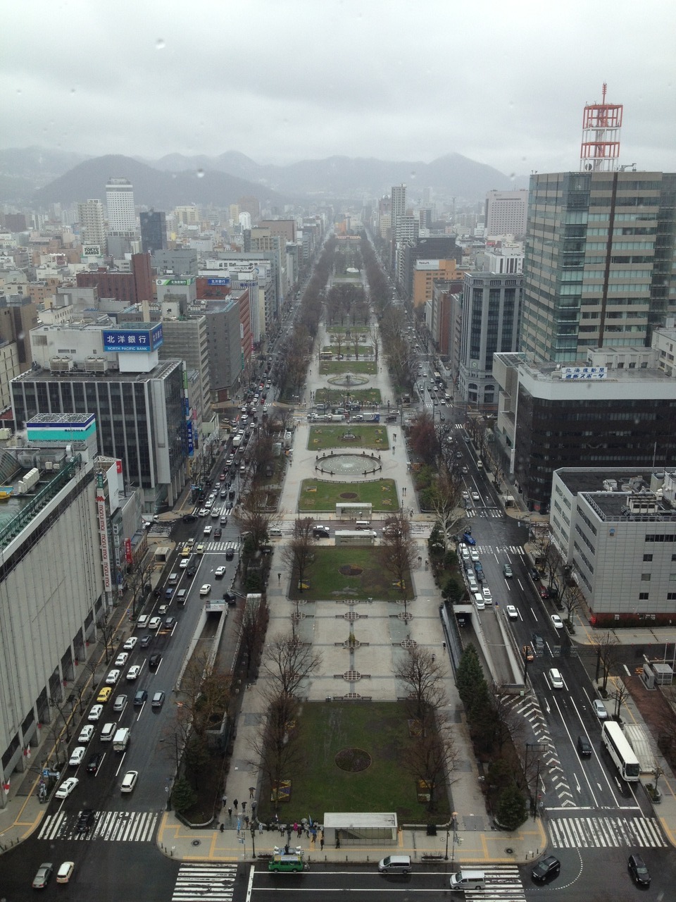 札幌の町を一望できるのがテレビ塔。大通公園も目の前に真っ直ぐのびており、圧巻の眺めです。