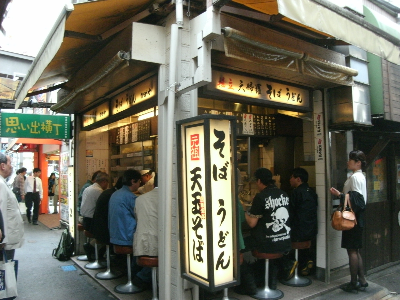 ここ新宿西口・思い出横丁中程。屋台風の立ち食いソバ店、でも座れます・8名様。