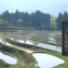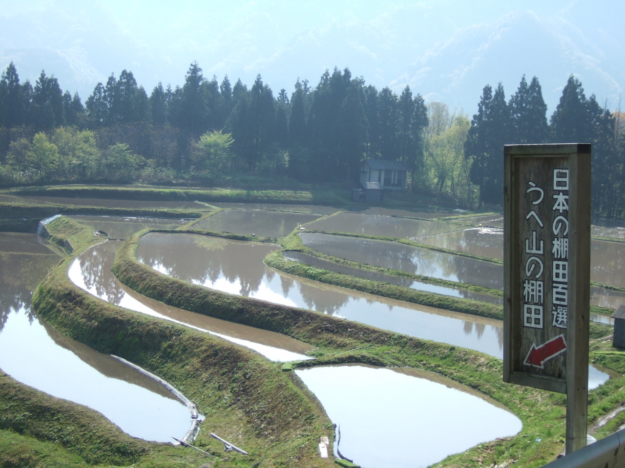 丁度田んぼに水をはった後に行ったので水面が太陽に照らされていて
