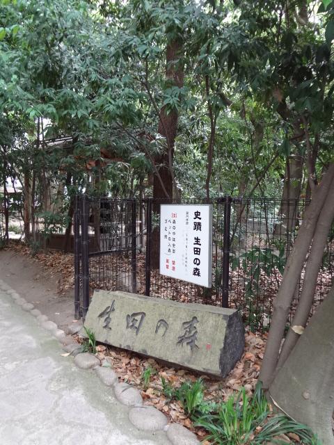 三宮駅近く生田神社の本殿の裏手に広がっています。以前はうっそうとした森だったようですが、現在は遊歩道と小川が整備されて、散策したり、ベンチに座ってくつろいでいる人もいました。古来から軍事的に重要な場所だったため、多くの合戦の場になったそうです。