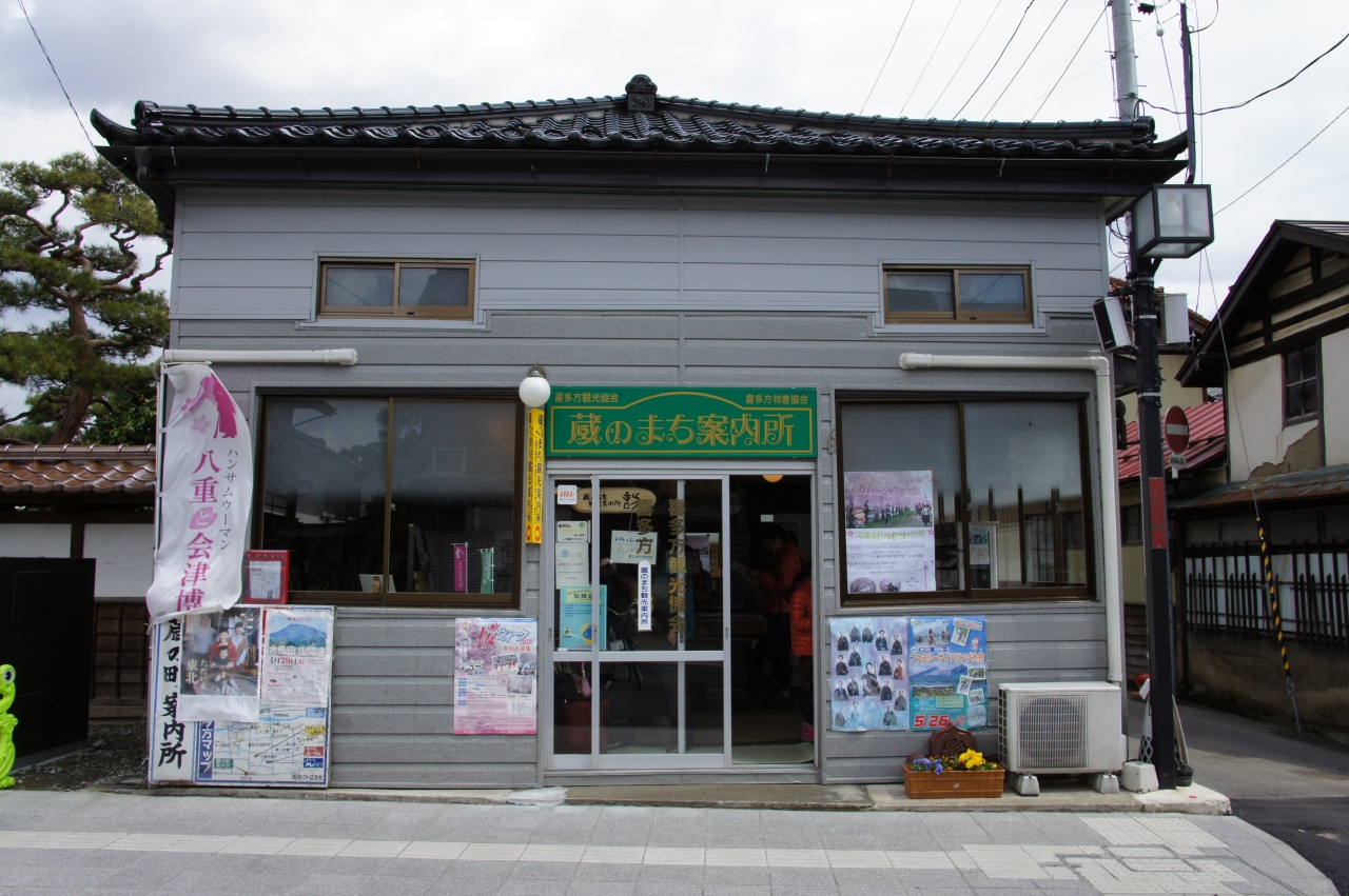 蔵のまち案内所は、喜多方ふれあい通りの中心にある観光案内所。部屋の真ん中には大きなテーブルがあって、ここで地図を広げて、いろいろ説明してくれました。三津谷に行きますと言ったら、「あれは遠いです」と一言。「そんなこといったって、自転車ですから」と言って行きましたが、結果は、案内所の人の言う通り。長い登り坂だし、自転車でも行くのは難しい場所だと思いました。