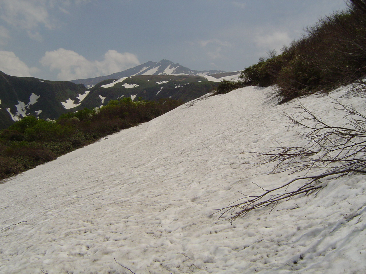 鳥海山には40年近く前の夏に一度登ったことがありますが、6月上旬に訪れたのはこれが初めてでした。幸い、道路は完全に除雪してあり、また展望台から少しだけ上のほうまで、登山道を歩いてみることができました。