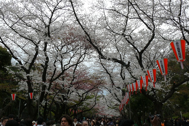 上野駅から成田空港に行く前に少し時間があり、桜が東京ではかなり早めの満開の時期だったため、行ってみました。