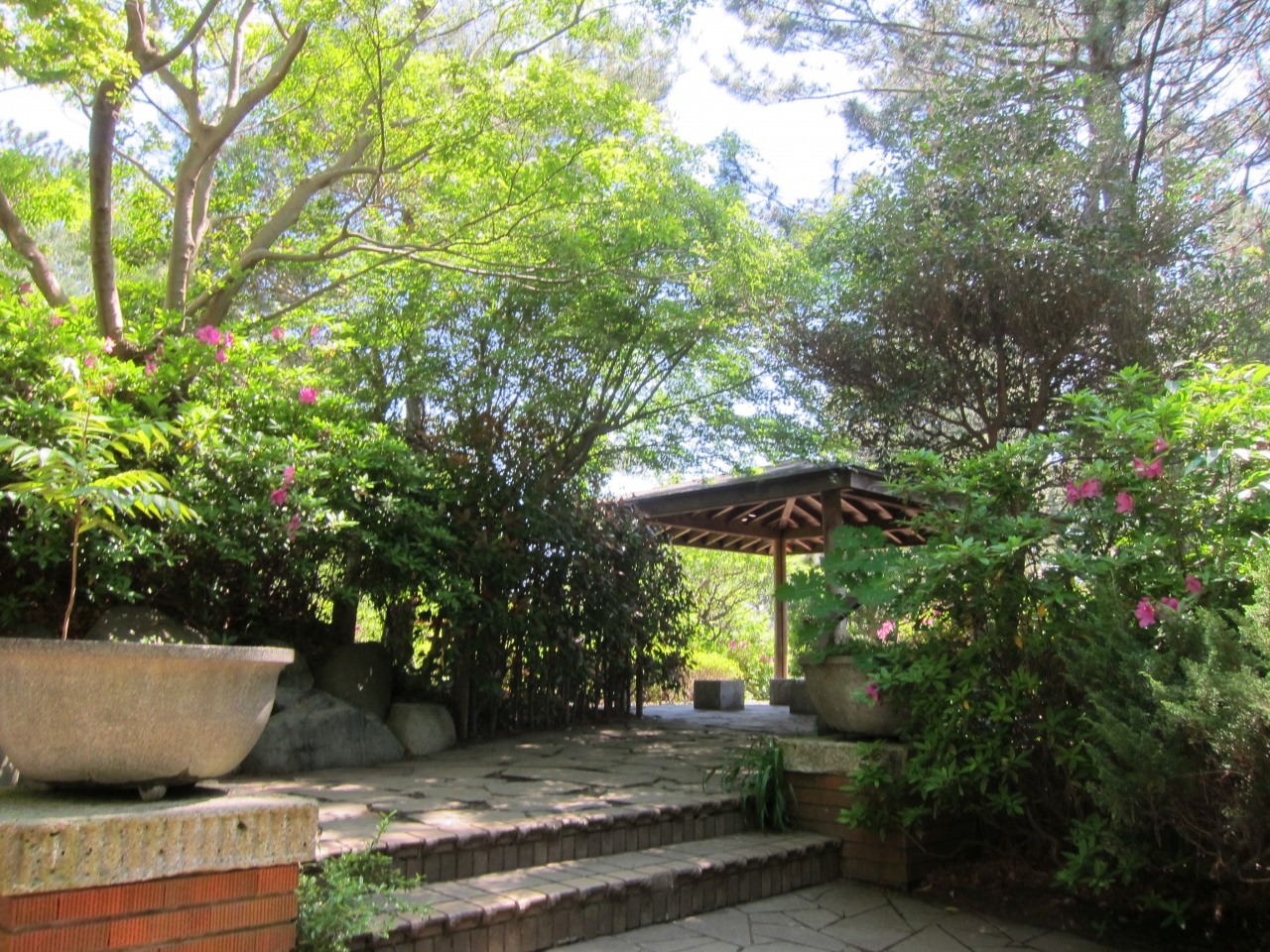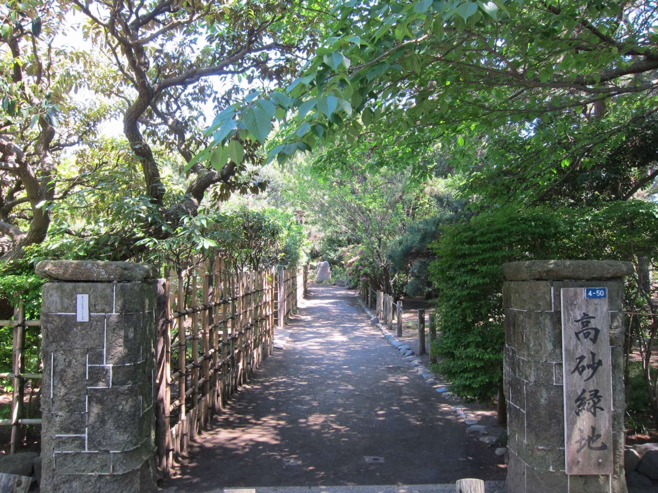 茅ヶ崎駅の北側(500mほど)に茅ヶ崎中央公園があるとすれば、南側(同500mほど)の憩いの場だと思います。海まで行くと茅ヶ崎公園がありますが少し遠いです。高砂緑地に併設して図書館や美術館があるのでゆっくりくつろげます(美術館にはカフェもあります)。緑地には日本庭園と茶室の松籟庵(建物内利用有料)や高砂緑地のもともとの持ち主であった川上音二郎の往時の井戸などがあるほか、築山には数人分ですが、こしかけ石とあずま屋があり、図書館で疲れた目を癒すのにはちょうど良いと思います。駅からも近いのですが、図書館前にはコミュニティーバスの停留所があり、1時間に2本ほど割合で茅ヶ崎駅南口からの便があります。図書館にはその他、駐輪場や北側に駐車場(有料)があります。また、緑地の南側にも駐車場がありますが美術館利用者のためとのことです。