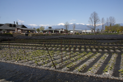 穂高の代表的観光スポット。ただのわさび園・・・そう思って行きましたが、嬉しい裏切りでした。わさび畑を流れるどこまでも清らかな水と、それを取り囲む自然、農場内のそこここから遠くに望める北アルプスの山々。そしてお蕎麦にわさびソフトクリーム、わさびコロッケなど、気軽なグルメも揃っていて、のんびりと過ごせるエリアです。