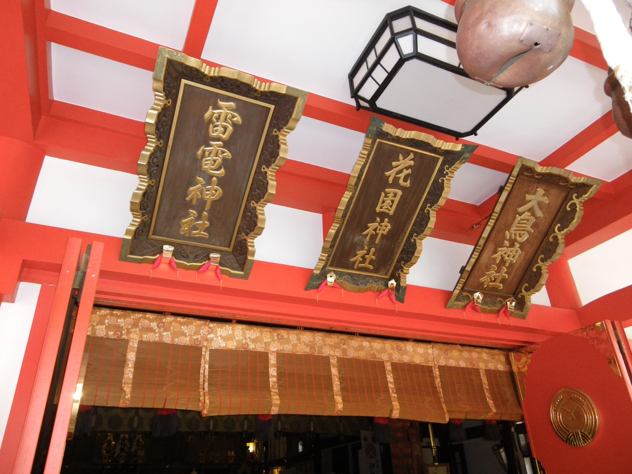 新宿にある伊勢丹から明治通りを池袋方面に向かう途中に花園神社があります。5月26日には例大祭が行われるということで、大々的に宣伝していました。ここは1603年徳川家康の江戸開府以前から新宿の総鎮守として重要な位置を占めていたそうです。境内の中は赤いテントで覆われた場所がありあまり景観はよくなかったですが、神社自体は大きかったです。