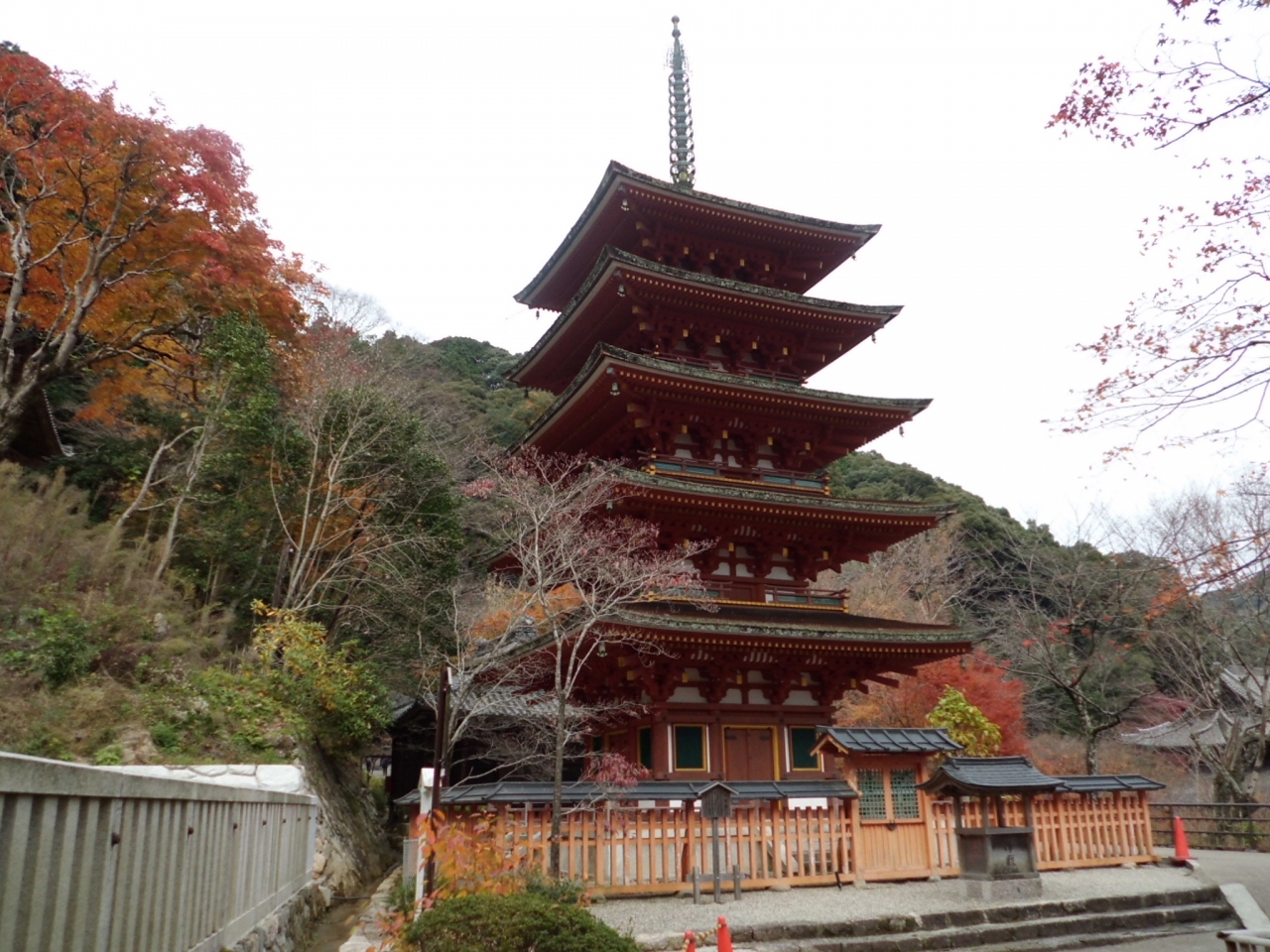 400段近くある登楼を登り、本堂を抜けると程なく五重塔が目前に現れます。