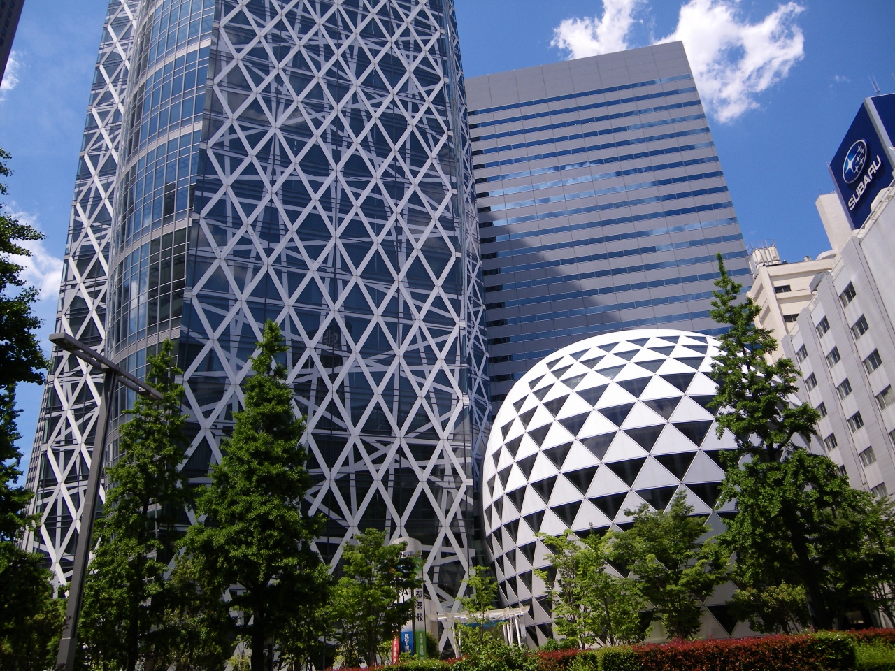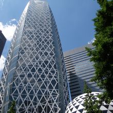 新宿駅西口方面に出て東京都庁方面に歩くと、東京モード学園の建物が目に入ります。ここは2008年に世界的な建築家故丹下健三氏の息子さんの憲孝さんが設計されたそうで、繭(コクーン)の形をした建物の外観が素晴らしく見ていて飽きません。さすがファッションの最先端を行く学生が集まる場所だなというイメージが湧きました。