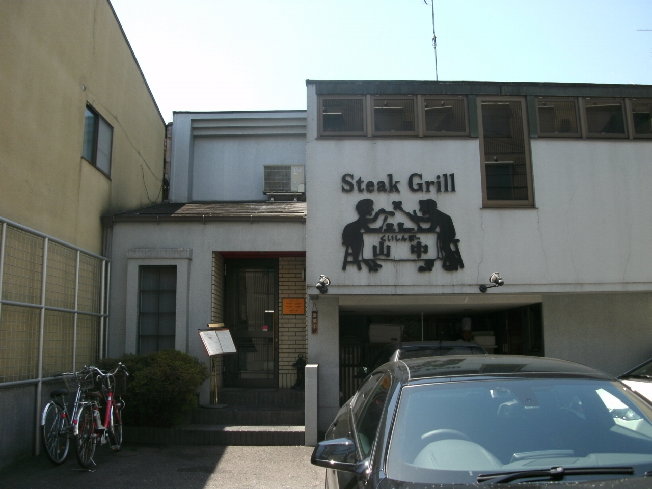 「くいしんぼー山中」さんは、物集女街道の千代原口の交差点から南に400mほど行った、物集女街道ぞいにあります。知る人ぞ知る、高級な近江牛に拘った肉料理の専門店です。前々から興味があったのですが、ちよっと敷居が高い感じがしてなかなか行けませんでした。今回、ちよっとハードルを下げて、家内と二人でランチを頂に行きました。お店の前には3台ほど駐車できるスペースがありました。店内は、広く、重厚で落ち着いた感じ。頂いたのは“ハンバーグランチ2940円”です。ハンバーグランチには、ベイクドポテトとグリーンサラダ、コーンスープ、コーヒー付きです。まず、運ばれてきたのがベイクドポテトで、バターが濃厚で風味も強く、口の中にホクホクと崩れるポテトは大変美味しかった。次に出た、コーンスープも濃厚で、クリーミーな甘さが口にひろがり、これまた美味い。グリーンサラダは特筆することなし。次に、到着した主役の“ハンバーグ”は、真ん中に穴が開いていて中に黄身が入り、まわりにデミソースがタップリ。スプーンで玉子を崩しながら頂くと、まろやかな玉子とデミソースが絶妙のコラボ。肝心のハンバーグについては、つなぎや玉ねぎなどは使わないとのことで、少し荒めにカットされた肉の集合ぐらいに考えていたのが、結構挽きも細かく意外と柔らかめ。確かに、美味しいことは美味しいが、ハンバーグと言う範疇には入れたらいけない様な料理でした。少しランクの低い挽き肉に、つなぎのパン粉やタマネギを加えて整形したものをオーブンでじっくり焼いて、切ったら中からドット肉汁が出るのをハンバーグと考えている者が食べた感想です。