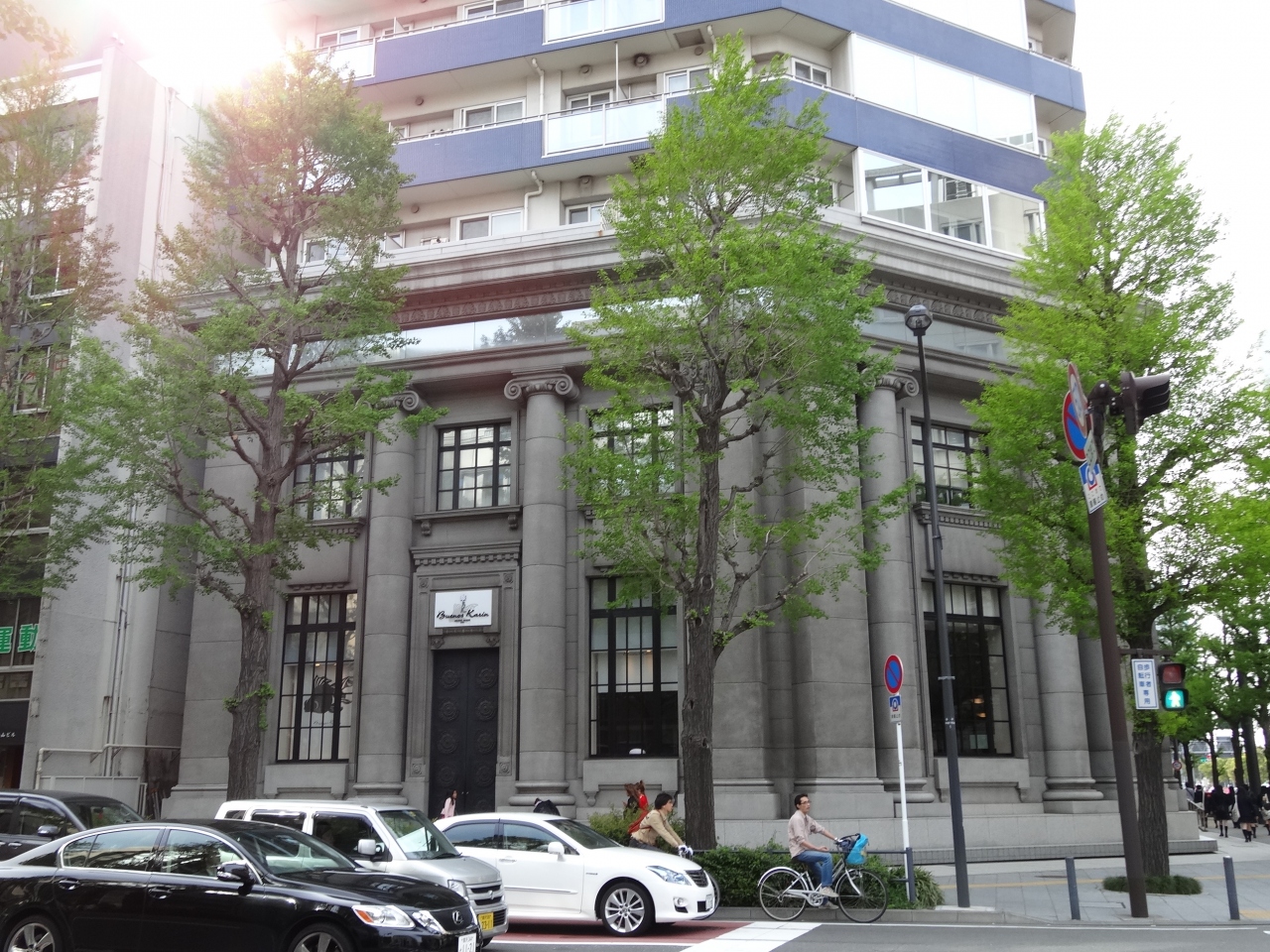 昭和初期に、第百銀行横浜支店として、現在の戸田建設が建てた建物です。その後、三菱銀行横浜支店から東京三菱銀行横浜中央支店となり、その後はマンションとして、立て替えられてしまいました。低層部の外壁は、10年くらい前に、銀行時代のものを忠実に復元したもので、横浜市の歴史的建築物に認定されました。