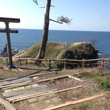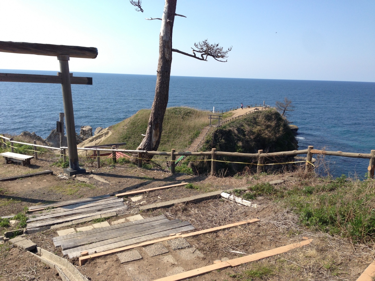 崖の側面をたとっで、神社に行く道も閉鎖されています。