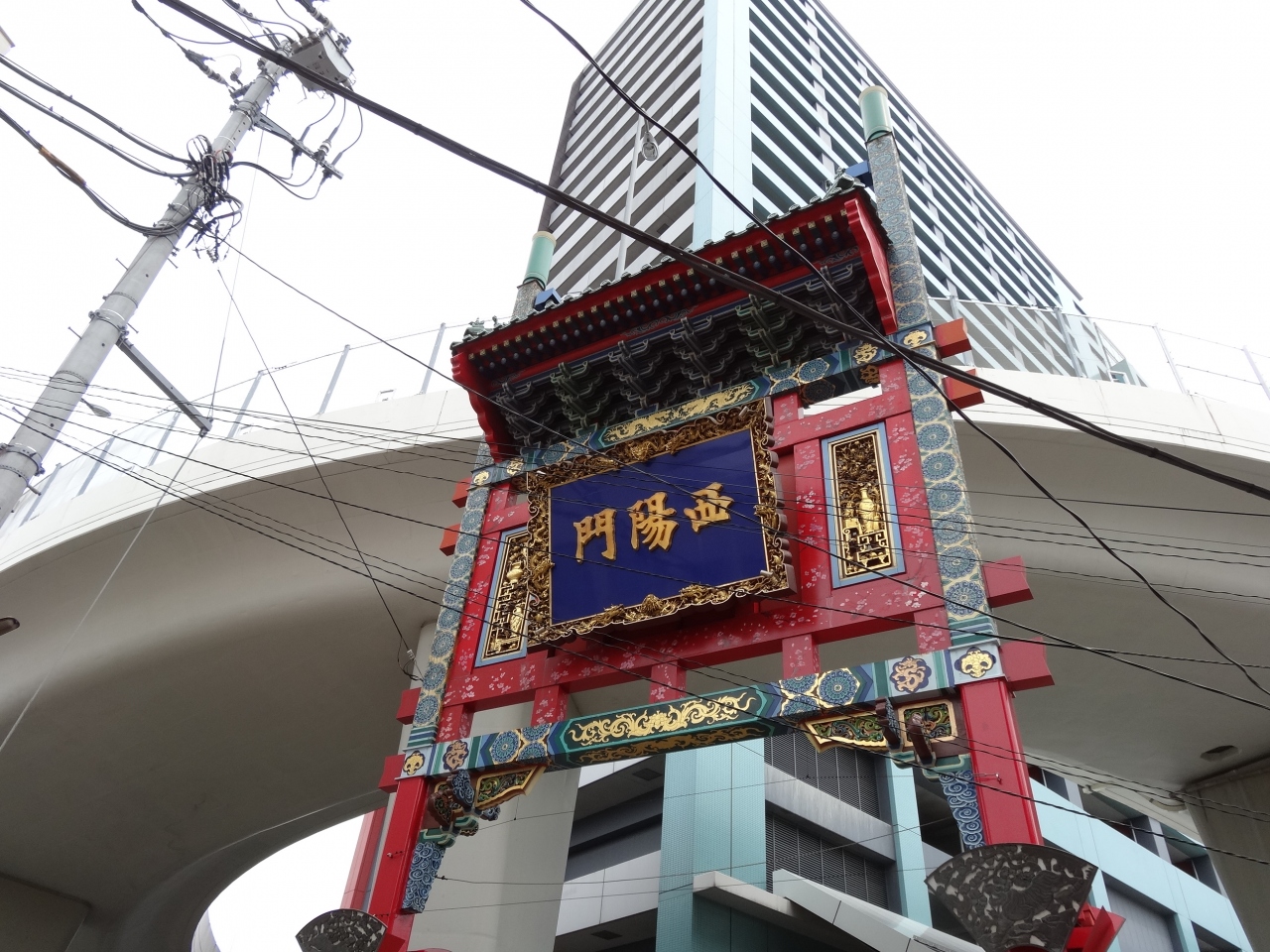 根岸線の石川町駅すぐの場所にある中華街の門で、