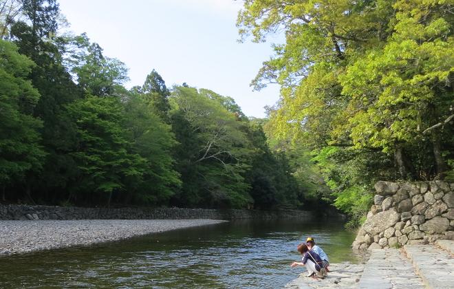 五十鈴川や別院等を取り囲んむ新緑がとりわけ美しく、