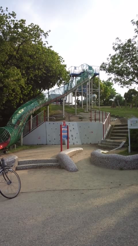 敷地は大分広く端から端まで歩くと、駅1駅分くらいになるとおもいます。公園内には宿泊施設(大阪国際ユースホステル)、その真横にバーベキューのできる施設があります。その他、交通公園、プール、大きな滑り台、バラ園などがあります。羽衣駅からは歩いて約7分です。