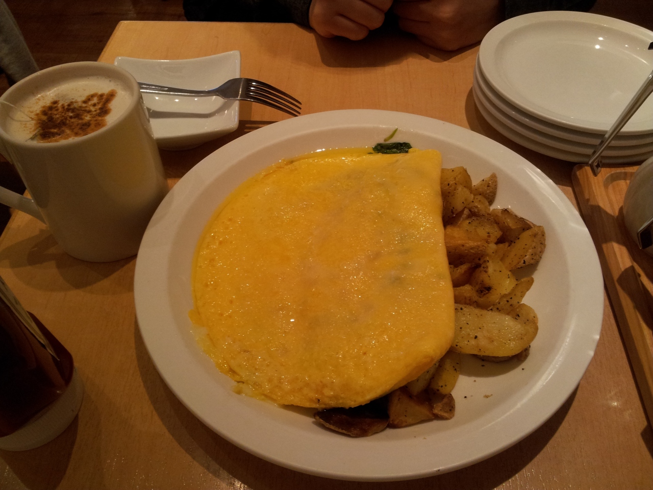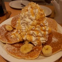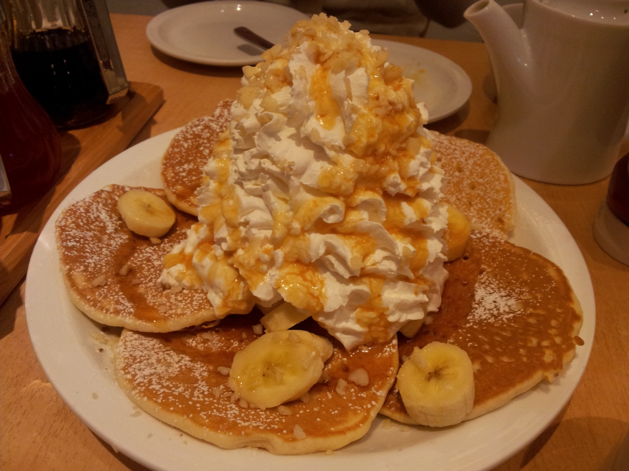 こちらの一押しとされているストロベリーのパンケーキは、イチゴと言ってもジャムなので(ハワイも)、私はバナナを。友達とオムレツの2品をシェアしました。
