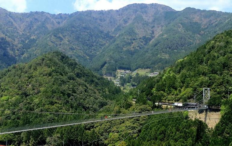 奈良県の「十津川村」にある鉄線の吊り橋としては日本で最長の297メートルで