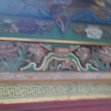 奥の院につながる門の飾りの眠り猫、裏にはスズメが楽しそうに遊ぶ。