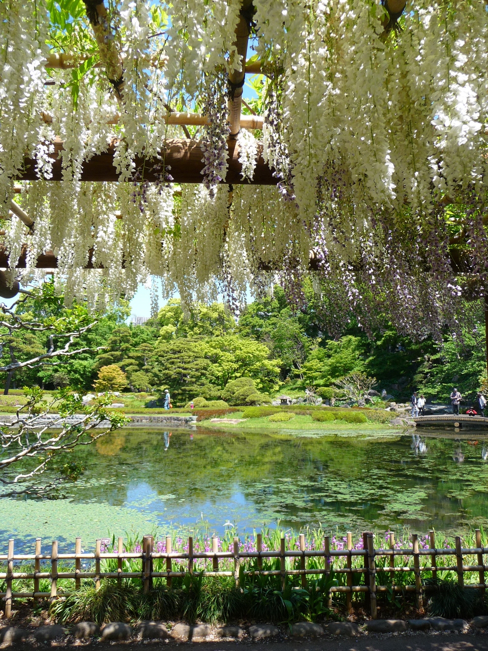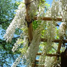 私が行った時には、薄紫の藤とめずらしい白の藤が満開でした。