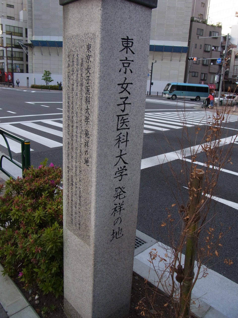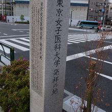 この目白通りの歴史のプロムナードには大学開校の地が多く、ここもその1つで、石碑が建っています。
