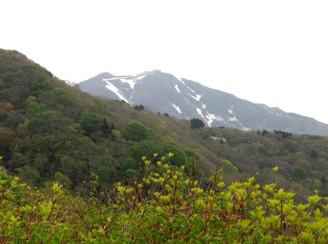 あいにくの雨空の中、佐渡の中心から大佐渡スカイラインの北端である