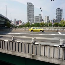 小さい橋ですが、土佐堀川と東横堀川をつないでおり、交通量は多いです。