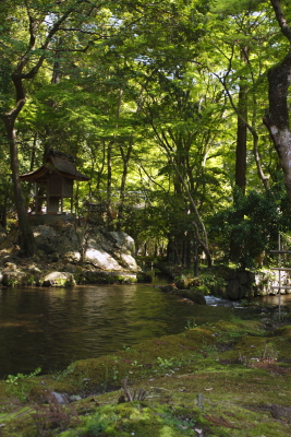 楼門前の太鼓橋が絵になる神社で、境内には落ち着いた色味の社殿が配されています。手前の広場には白馬がいたり、大きな枝垂れ桜が見られます。そして境内だけでなく、周辺には森林が広がり、綺麗な水が流れていて、神聖な雰囲気の中で癒されます。