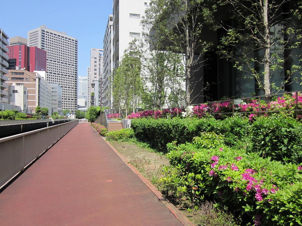 新芝運河沿緑地は、田町駅の芝浦口から2分程度の、新芝橋の左右に伸びる運河沿いの遊歩道です。毎年秋には芝浦運河祭りも開催されます。