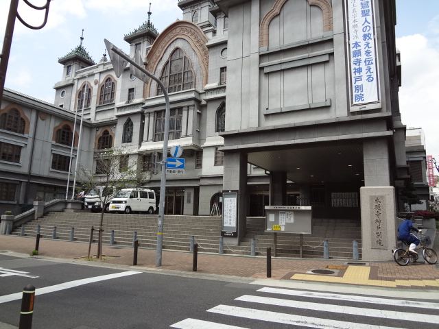 JR線高架の北側、神戸駅から元町駅の間にあります。本願寺の別院で、築地の別院と似た雰囲気の建物です。1917年に火事があったあと、現在のインド様式の建物になったそうです。ホールや会議室もあって、結婚式も挙げられるそうです。
