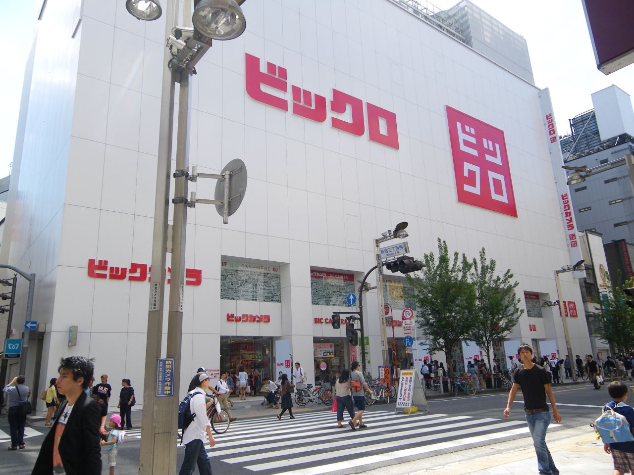 ビックロは2012年9月にオープンした、ユニクロの服とビックカメラの家電がコラボレーションした商業ビルです。家電と服が一緒に並んでいてとても面白いフロアーです。服を見ていても家電にも目を向けてしまうアイデアは斬新ですね。今日も店内は込み合っていました。