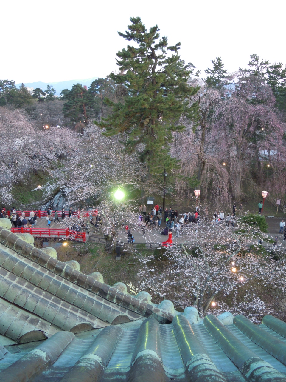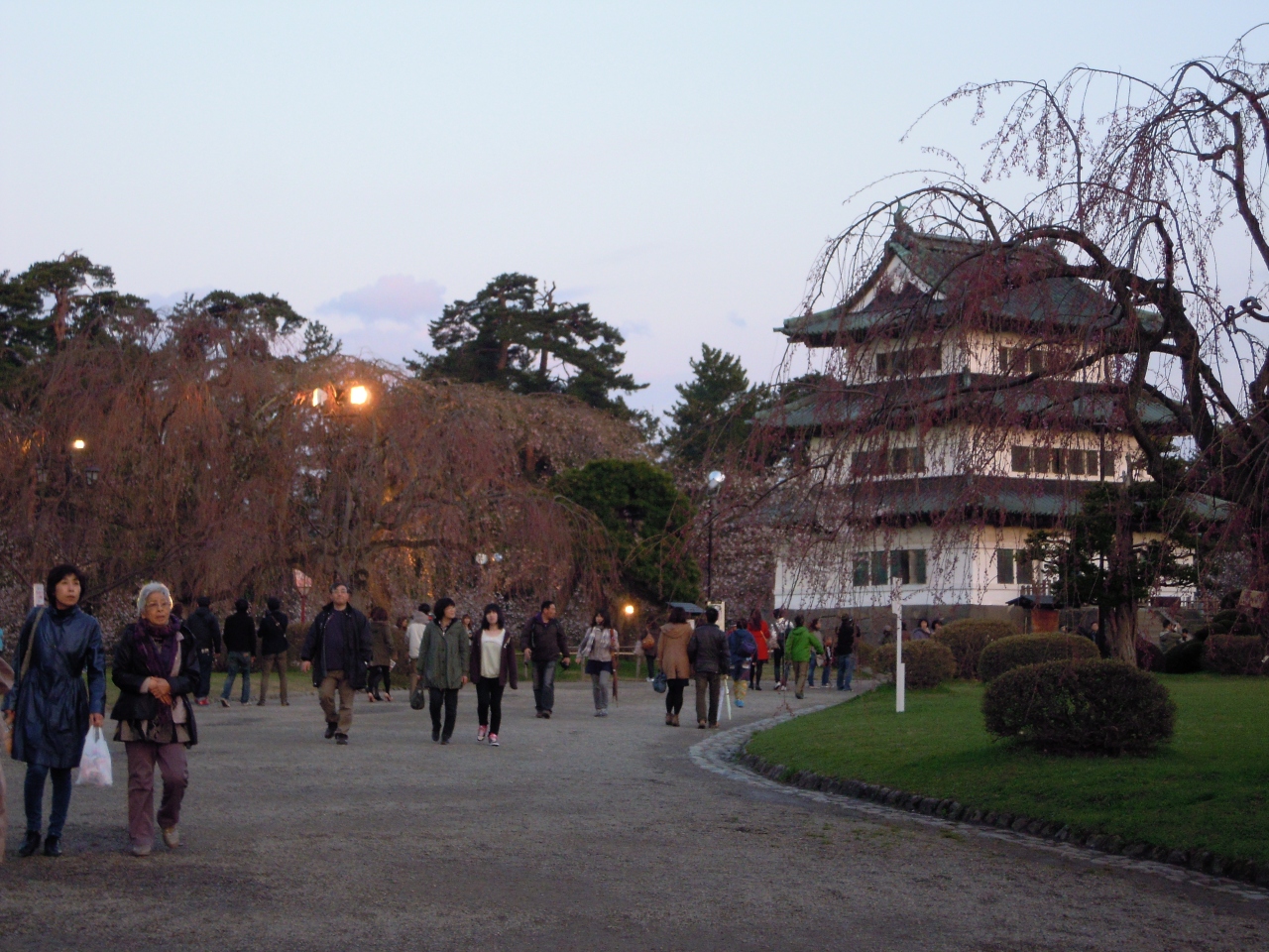 弘前公園にある弘前城の天守閣は有料エリアにさえ入れば、この天守閣は自由に入れます。この天守閣は「弘前城史料館」となっており、5月の連休だったから入るまで行列ができていました。天守閣自体は意外にも小ぶり(3層)ですね。中から外の桜の景色を観るのはいいですよ。