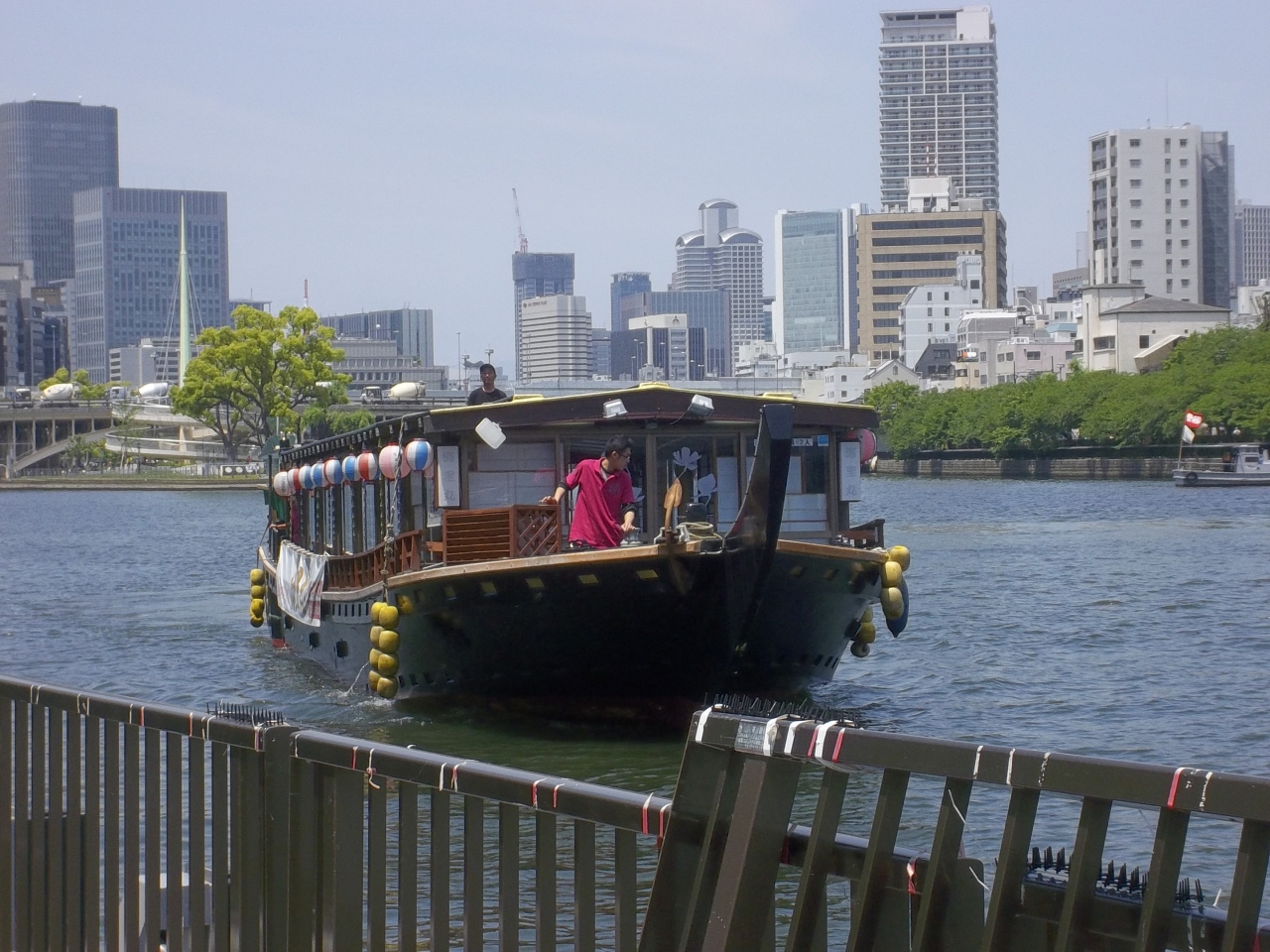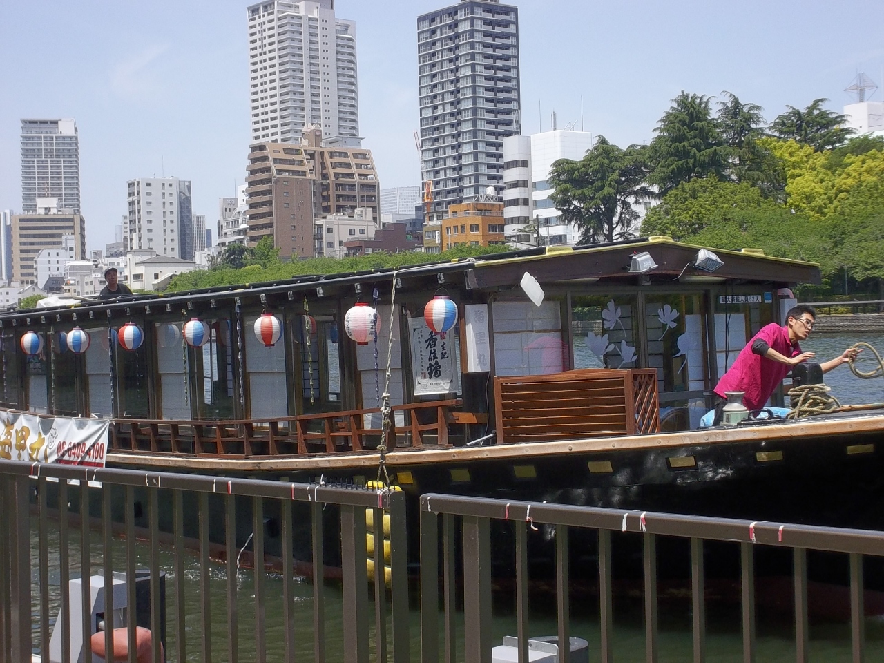 今回は同じ乗船場から出る屋形船にのりました。屋形船・海里丸は大阪で唯一、調理場を備えた屋形船だそうです。