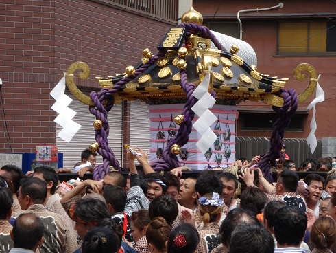 浅草の街は熱気に包まれた3日間になります。人が多く浅草神社付近には近づくにも前に進むのにも大変な状況です。100基にもなる神輿が浅草神社でおはらいを受けてからの宮出し・宮入は見どころですが傍まで行くこと難しいかもしれません。下町の風物詩です。