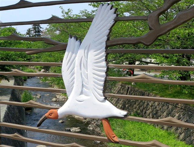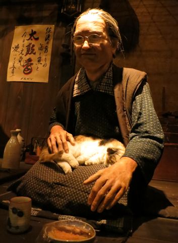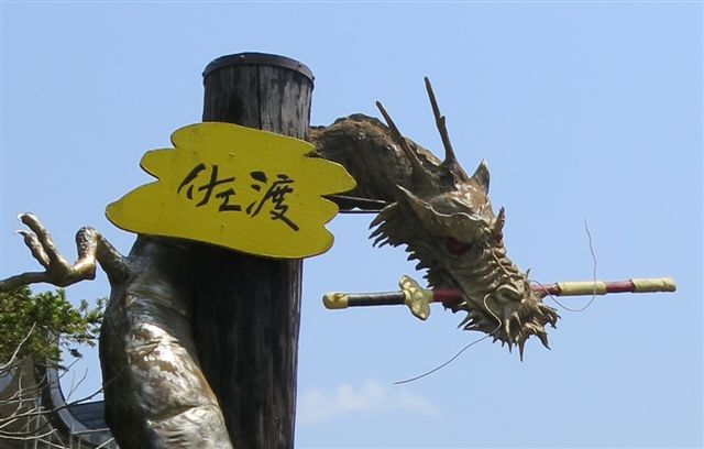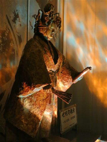 佐渡にゆかりのある歴史上の人物や伝説を等身大のロボットで紹介しているところ。