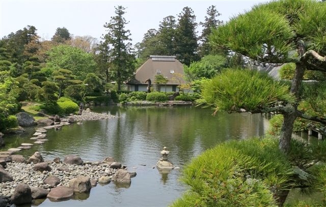 食事処「夕鶴」では庭園を見ながら食事をすることができる。