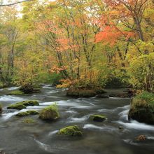 奥入瀬渓流温泉側から行くと石ケ戸休憩所より手前にあるため観光客が少なく、三脚を立ててゆっくり写真が撮れる穴場です