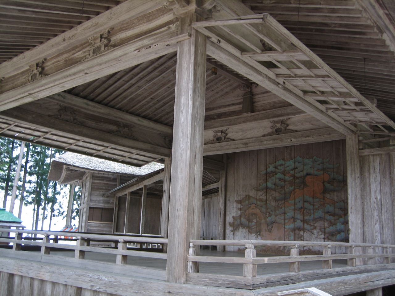 中尊寺の敷地内にある白山神社の境内にある神楽殿。能舞台です。